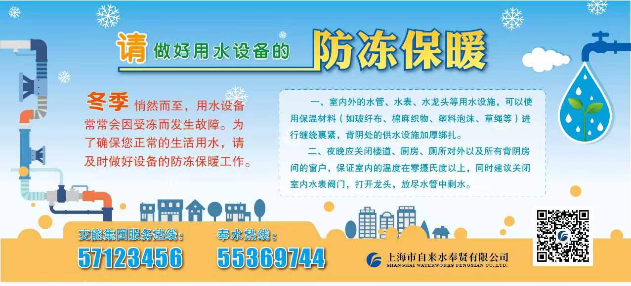 冬季悄然而至,用水设备常常会因受冻而发生故障。为了确保您正常的生活用水,请及时做好设备的防冻保暖工作。