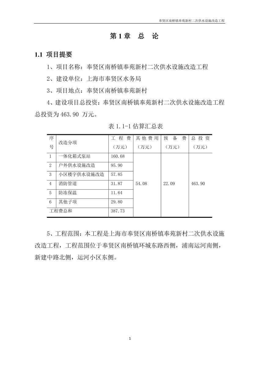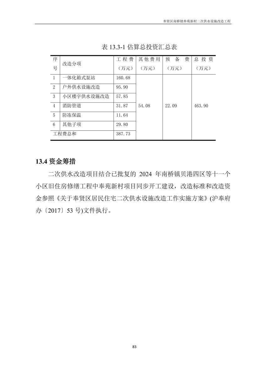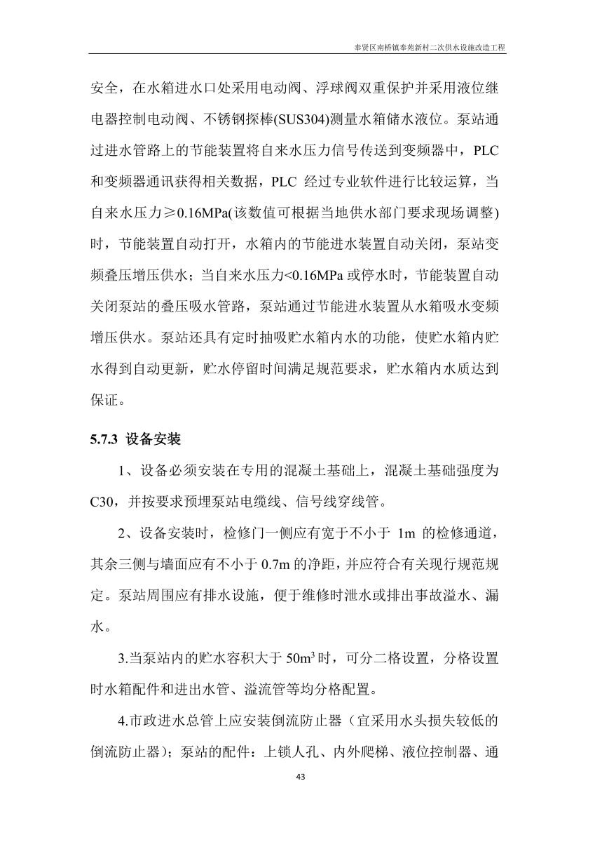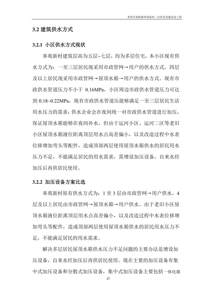 奉贤区南桥镇奉苑新村二次供水设施改造工程设计文件公示